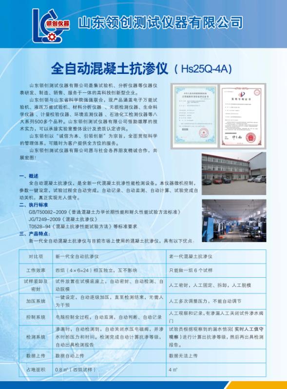 全自动混凝土抗渗仪,是由我公司研发的新一代混凝土抗渗性能检测设备。其操作简单、性能优良、试验可靠,得到广大新老客户的一致好评。主要使用于混凝土抗渗性能和抗渗标号的测定。同时也可利用它做建筑材料透气性的测定和质量检查,在生产、施工、设计、教研等部门广泛使用。